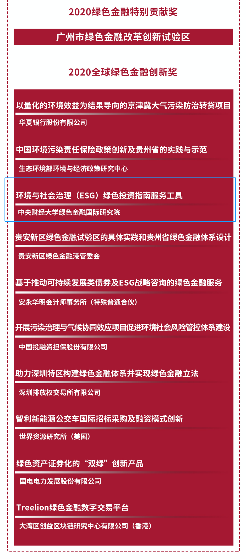 On November 15,the International Institute of Green Finance, CUFE (IIGF) was announced as one of the winners of the 2020 Global Green Finance Innovation Award for ‘The guide for green investment regarding the Environment Society and Governs(ESG)’. The decision was made by a committee composed of 15 members based on 5 measures: project innovation, potential of extension, contribution to the industry, profitability, and promotion of public welfare.