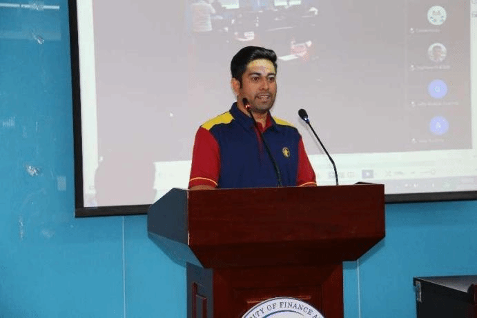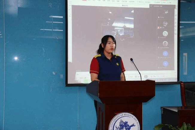 教师发言结束后,老生代表2021级区域经济学学生温鹏发言,代表2021级全体学生欢迎新同学的到来。他以切身体会为例,希望同学们能够珍惜校园时光,在积极竞争的同时要做好规划,承担起新时代青年的责任和担当。温鹏发言完毕后,2022级区域经济学新生代表李雨珊、2022级硕士留学生代表吴芳菲ISATOU TRAWALLY、2022级博士留学生代表王伟RIZWAN AKHTAR JAMSHEED依次上台发言,对未来几年的研究生生涯进行了展望和规划,他们均提到作为研究生应当明确目标,自主创新,在学术领域内积极探索;应当博采众长,厚积薄发,积极向优秀的老师及同学学习;应当修身立德,志存高远,秉持“厚德载物、守正出新”的院训,做一个有理想有担当的中财人。