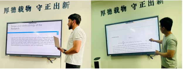 Distinguished attendees, including Associate Professor Zhao Guoqin and Associate Professor Yan Haosheng, actively engaged in the discussion. Both professors provided numerous valuable suggestions that are expected to enhance the quality of Lin and Alipasha's research papers. Their input covered various aspects, from conducting a more in-depth analysis to strengthening the background of the research, which will no doubt contribute to a more in-depth and comprehensive understanding.