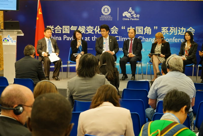 马拉喀什时间11月7日-18日,联合国气候变化框架公约(UNFCCC)第22次缔约方大会(COP 22)在摩洛哥马拉喀什召开,北京财经研究基地专家王遥研究员、刘倩副研究员和许寅硕博士以观察员身份参加会议,并于马拉喀什时间11月15日列席中国角“中国气候投融资论坛”边会。该边会由国家发改委应对气候变化司综合处、WWF和UNEP联合举办。国家发展和改革委员会应对气候变化司副司长李高和联合国副秘书长、联合国环境规划署执行主任Eric Solheim做开幕致辞。亚洲开发银行东亚局局长Ayumi Konishi,中国人民银行研究局首席经济学家、中国金融学会绿色金融专业委员会主任马骏,世界银行气候变化高级总监John Roome,国家开发银行首席经济学家、研究员、国开发展基金总经理刘勇,国际金融公司全球气候金融项目总监Peer Stein,世界自然基金会全球气候和能源项目总监Manuel Pulgar-Vidal等做了主旨演讲。
