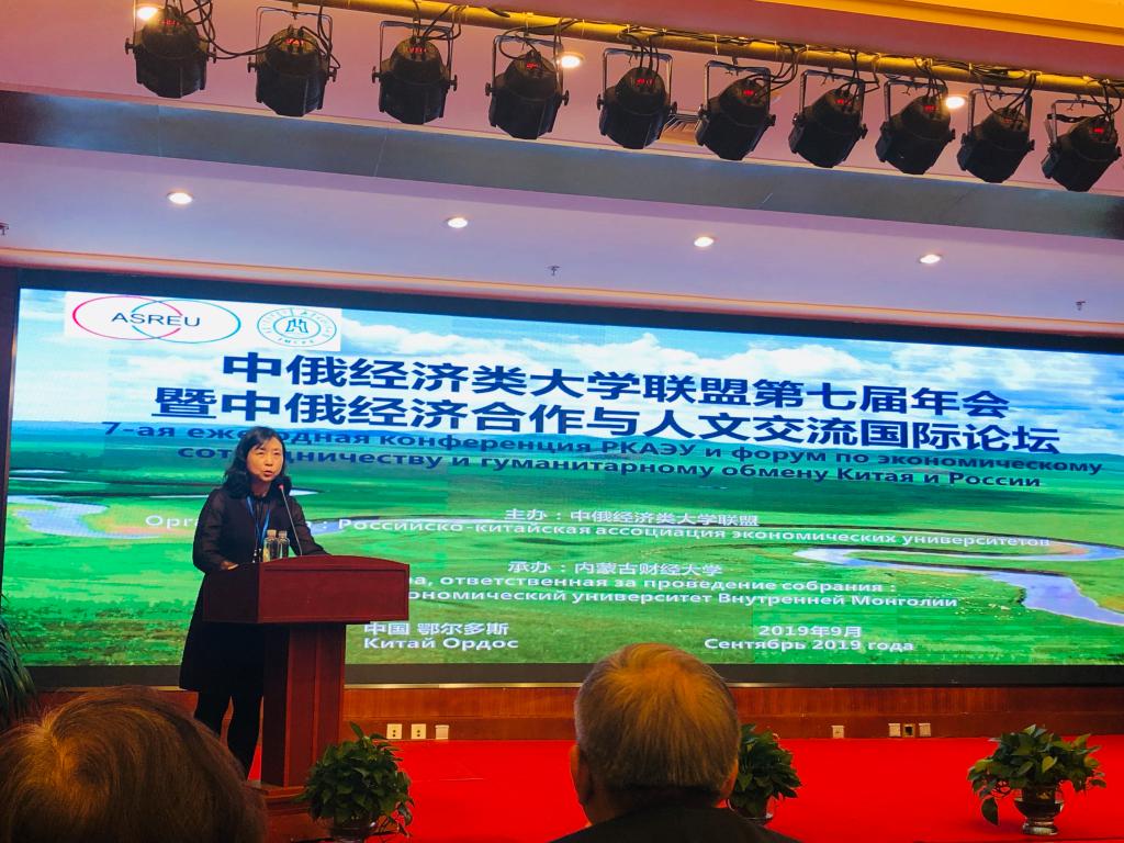 2019年9月26-27日,第七届中俄经济类大学联盟年会暨“中俄经济合作与人文交流”国际论坛在中国内蒙古鄂尔多斯召开。教育部国际司李海副司长、俄罗斯驻华使馆教育参赞伊戈尔·亚历山大洛维奇先生出席会议并致辞。来自中国的对外经济贸易大学、中央财经大学、中南财经政法大学、西南财经大学、广东外语外贸大学、东北财经大学、山东财经大学、山西财经大学、贵州财经大学、浙江财经大学、吉林财经大学、广东财经大学等十六所中国经济类高校,以及来自俄罗斯的圣彼得堡国立经济大学、俄罗斯联邦政府财经大学、西伯利亚联邦大学、俄罗斯普列汉诺夫经济大学、西伯利亚联邦大学、贝加尔国立大学、俄罗斯南联邦大学、符拉迪沃斯托克国立经济与服务大学等十余所俄罗斯经济类院校的代表们参加了此次年会。我校俄罗斯东欧中亚研究中心主任童伟研究员和国际合作处温卫老师应邀参加此次大会。