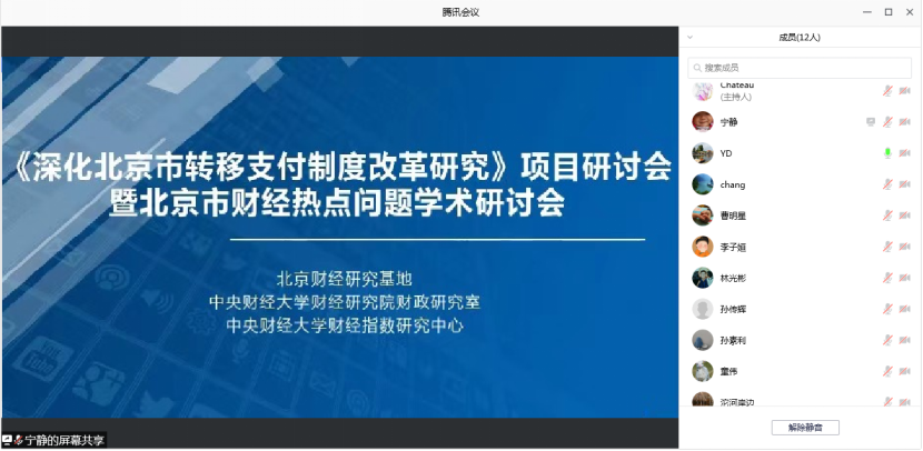 2021年1月4日,“深化北京市转移支付制度改革研究”项目研讨会暨“北京市财经热点问题”学术研讨会在腾讯会议召开,本次会议由北京财经研究基地、pc28预测在线预测神测网咪牌财政研究室、中央财经大学财经指数研究中心联合举办。与会专家有pc28预测在线预测神测网咪牌院长、北京财经研究基地首席专家林光彬教授、中央财经大学特聘教授袁东教授、中央财经大学绩效管理研究中心童伟研究员、财政研究室昌忠泽研究员、北京市财政局财源建设处李子姮副处长、pc28预测在线预测神测网咪牌副院长曹明星、pc28预测在线预测神测网咪牌副院长李向军、财政研究室助理研究员孙传辉。本次研讨会由财政研究室主任赵国钦老师主持,主汇报人是财经发展指数中心主任宁静副研究员。