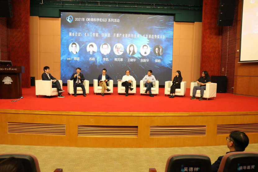 我院数字财经研究中心主任陈波副研究员主持了圆桌论坛《人工智能,区块链,开源产业链的科技和人才发展趋势》以及开放原子大学银牌认证讲师颁证仪式。