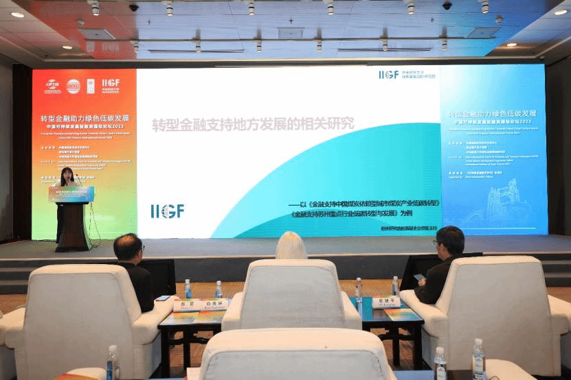 会上,绿色金融国际研究院国际合作部主任毛倩、绿色金融研究中心主任任玉洁作为代表,分别发布了依托中财大绿金院全球绿色金融发展指数(Global Green Finance Development Index, GGFDI)指标体系的《全球绿色金融发展指数和国别排名》以及由能源基金会支持的《转型金融支持地方转型发展——以内蒙古、苏州为例》重磅研究成果。