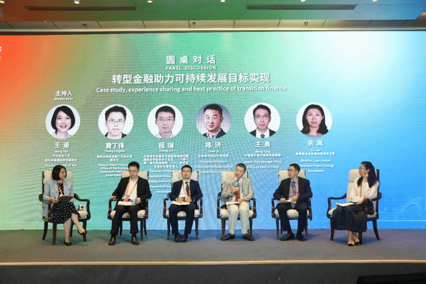 论坛圆桌对话环节由王遥研究员主持,湖州市政府金融工作办公室副主任黄丁伟、北京绿色金融与可持续发展研究院国际合作研究中心主任、“一带一路”绿色投资原则(GIP)秘书处北京办公室负责人程琳、中金研究院执行总经理陈济、中国银行总行资深风险经理王勇、能源基金会低碳转型项目主管余岚等围绕国内外转型金融发展现状与实践探索,转型金融面临的难点与突破点以及转型金融助力企业低碳转型的挑战与机遇等问题进行了讨论和经验分享。研讨嘉宾一致认为,推动金融支持绿色低碳转型对于实现“双碳”目标至关重要,未来要不断完善或开发新的转型工具和产品,进一步完善激励机制和配套措施,更好地利用转型金融支持产业绿色转型。
