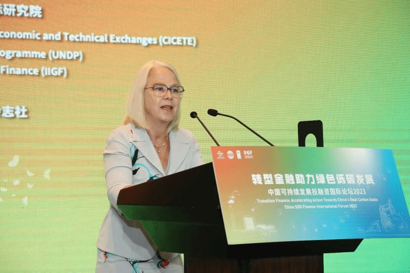联合国开发计划署驻华代表白雅婷在致辞中表示,中国在调整金融体系以实现长期转型方面成果显著。自2016年起,中国建立了一个全面的绿色金融体系政策框架……然而,要实现中国和世界所需要的规模化低碳转型,还需要进一步的行动。正如《2022年G20可持续金融报告》所强调的,我们不仅需要金融支持“纯绿”活动,还需要金融支持能源、建筑、化工等难减排的行业实现转型,
