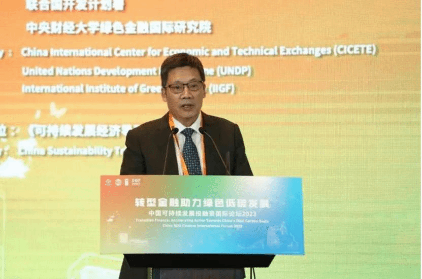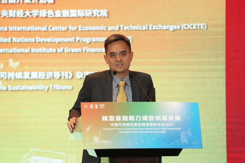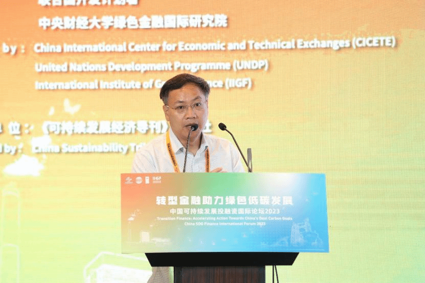 2023年9月6日,由中国国际经济技术交流中心(以下简称“交流中心”)、联合国开发计划署(UNDP)、中央财经大学绿色金融国际研究院联合主办,《可持续发展经济导刊》承办的 “转型金融助力绿色低碳发展——中国可持续发展投融资国际论坛2023” 在北京国家会议中心成功举办。来自国内外公共及私营部门的广大利益相关方通过线上线下相结合的方式,共同探讨了转型金融在国内外的最新进展以及未来趋势,为进一步落实《巴黎协定》目标和联合国2030可持续发展目标,深入挖掘可持续发展投融资增长空间探讨了新方向,分享了新思路。绿色金融国际研究院理事长史建平教授,我院研究员、绿色金融国际研究院院长王遥受邀出席,分别做致辞及主持圆桌论坛。