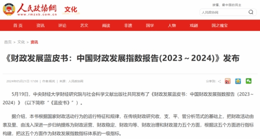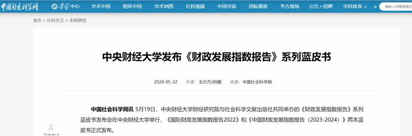 《财政发展指数报告》系列蓝皮书发布会召开之后,在社会上引起了广泛关注,并且取得了良好的社会反响。截至目前,已经有中国社会科学网、人民政协网、中国财经报、新浪财经和今日头条等多家媒体对《财政发展指数报告》系列蓝皮书以及发布会进行了专题报道。