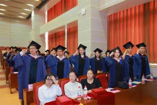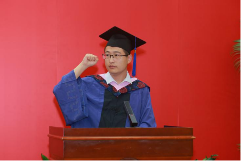进入毕业生宣誓环节,毕业生代表徐桥领誓,全体毕业生庄严宣誓。