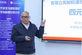 中国政法大学教授柯华庆以“党导立法与通观经济学中的哲学四元论”为题,阐述了其创新的四元论哲学,该理论超越传统哲学思维,将实体、关系和时间作为基本要素,为理解中国特色社会主义市场经济提供了新的视角,强调了关系和时间在社会现象中的重要性。
