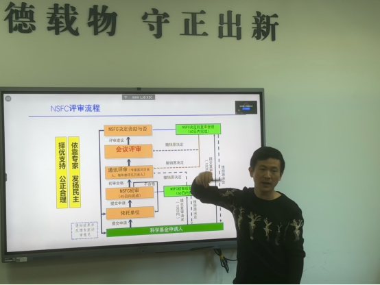 在两个多小时的报告中,俞教授围绕“如何提升国家级科研项目申报成功率”这一主题,从选题设计到申报书撰写进行了全流程的详细讲解。他强调,选题是申报成功的关键,需紧密结合国家战略需求,应将学科前沿与国家需求相结合。他建议青年教师选择具体且创新性强的研究问题,而面上项目则可以适当拓展研究范围,展现学术深度。同时,他还分享了如何通过文献综述和研究框架的设计,体现研究的独特性和科学价值。