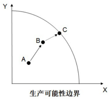 傅强老师谈到数字经济对传统经济的变革,在微观上颠覆了传统企业的盈利模式,中观上重塑了传统的市场概念,宏观上加速政府和市场融合。而在大数据、互联网等数字技术作用下,市场无形之手更加有效、政府有形之手更加精准,使社会总产出逐渐趋向于生产可能性边界的C状态(见下图),接近最有效率的资源配置情况。
