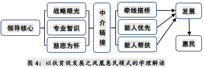 “以扶贫促发展”是一回事,使其真切地惠及民众(“获得感”)是另一回事。凤凰模式的另一个重要特质是在两者间建立链接中介,作为领导核心发挥第一推动力的第三个支柱。前两个支柱是塑造吸引力和激发参与。
