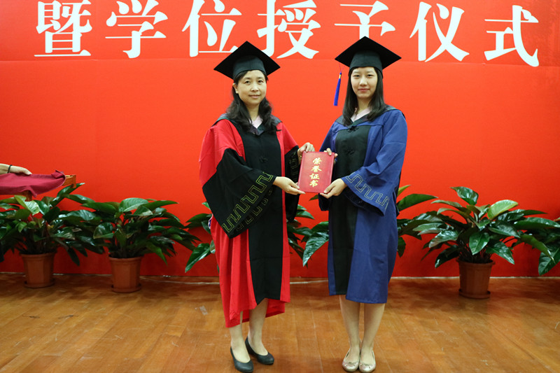 在庄严澎湃的国歌声中,典礼拉开了帷幕。陈灵副院长首先宣读了《关于2016届研究生毕业及授予学位的决定》,向今年获得硕士学位的4位同学和获得博士学位的1位同学表示祝贺。随后,陈老师宣读了《关于表彰2016届优秀毕业研究生的决定》,对获得校级优秀毕业生称号的王敬轩同学表示祝贺,并勉励其他同学以其为榜样,不断进取,教师代表童伟老师为王敬轩同学颁发了荣誉证书。