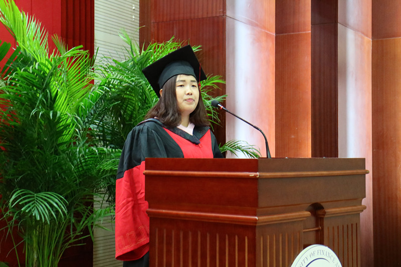 丁超同学作为毕业生代表发言,她是我院第一个毕业的博士研究生。她回忆了几年博士研究生生活难忘的点点滴滴,对研究院老师们的精心培养和无微不至的关心表示衷心的感谢。