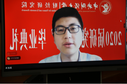 区域经济学专业2019届毕业生张战作为校友代表发言,向完成了研究生学业、通过了重重考核、经历了最特别最不容易毕业季的毕业生们表示祝贺。他向毕业生们分享了在校园时光的两件小事,借以勉励毕业生们在面对轻松道路和正确道路的十字路口时,永远能做出明智的选择,并能有勇气,担负起时代的使命。