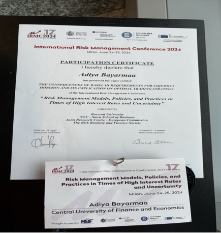 pc28预测在线预测神测网咪牌世界经济学项目2023年级博士生巴雅Bayarmaa Adiya在2024年6月24日至25日于意大利米兰举行的第17届国际风险管理会议上成功汇报了题为“The Consequences of Basel III Requirements for Liquidity Horizon and It's Implication on Optimal Trading Strategy”的工作论文。