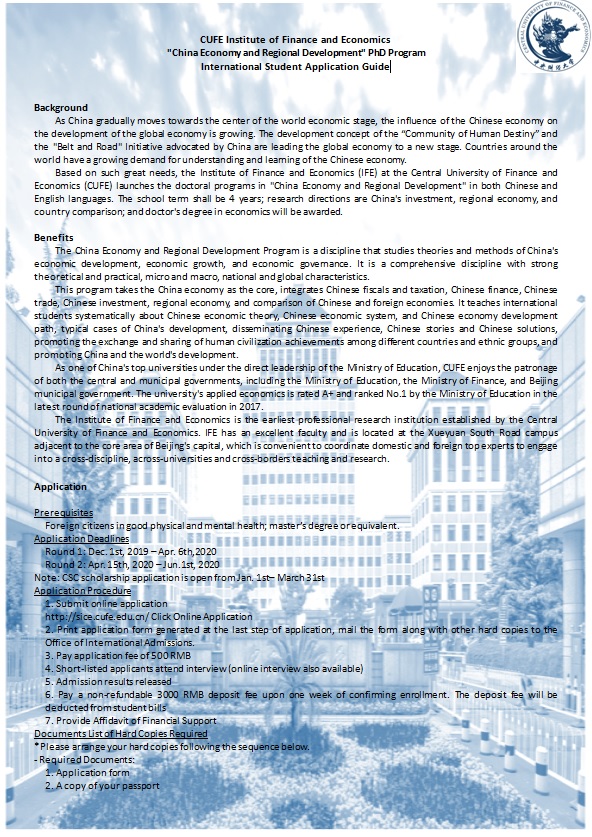 中国经济与区域发展博士项目2020年招生简章(英文版)