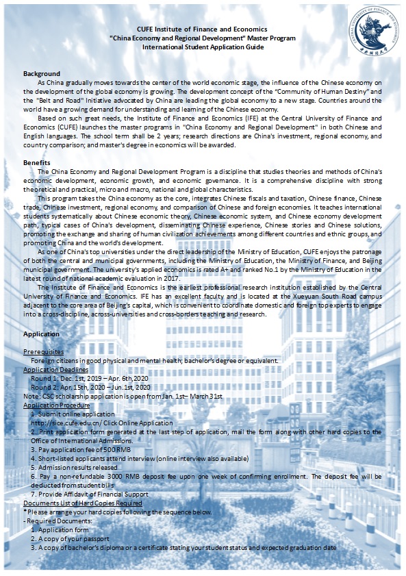 中国经济与区域发展硕士项目2020年招生简章(英文版)