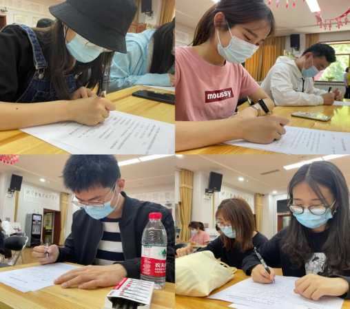 活动的第一部分是建党百年知识问答和消防安全问卷答题活动。同学们帮助发放和收取问卷,并一起进行学习和答题。