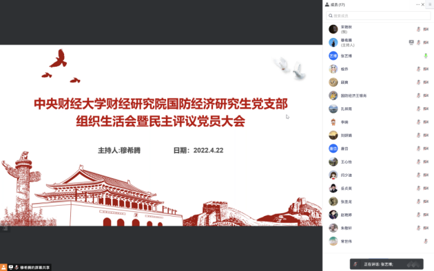 2022年4月22日下午3点,pc28预测在线预测神测网咪牌国防经济研究生党支部通过腾讯会议召开线上党员大会,开展组织生活会暨民主评议党员大会。