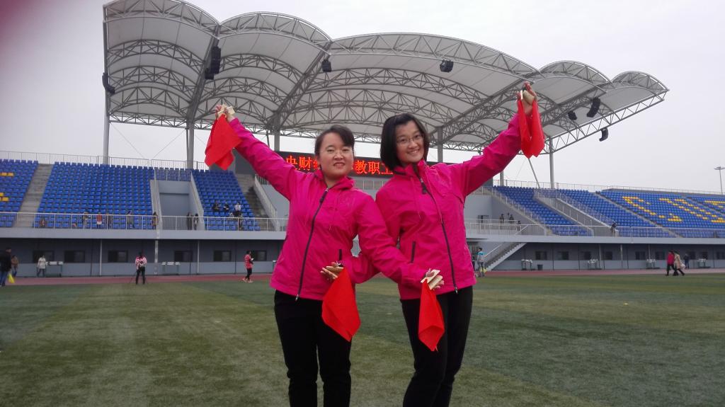2015年10月23日,一年一度的学校秋季运动会在沙河校区运动场举行。青年教工雷丹和李姗姗作为我院教师代表参加了运动会开幕式广场舞《大高原》的表演。伴随着飘舞的红绸、清脆的竹板,悠扬的舞曲,演出掀起了运动会开幕式的第一个高潮。