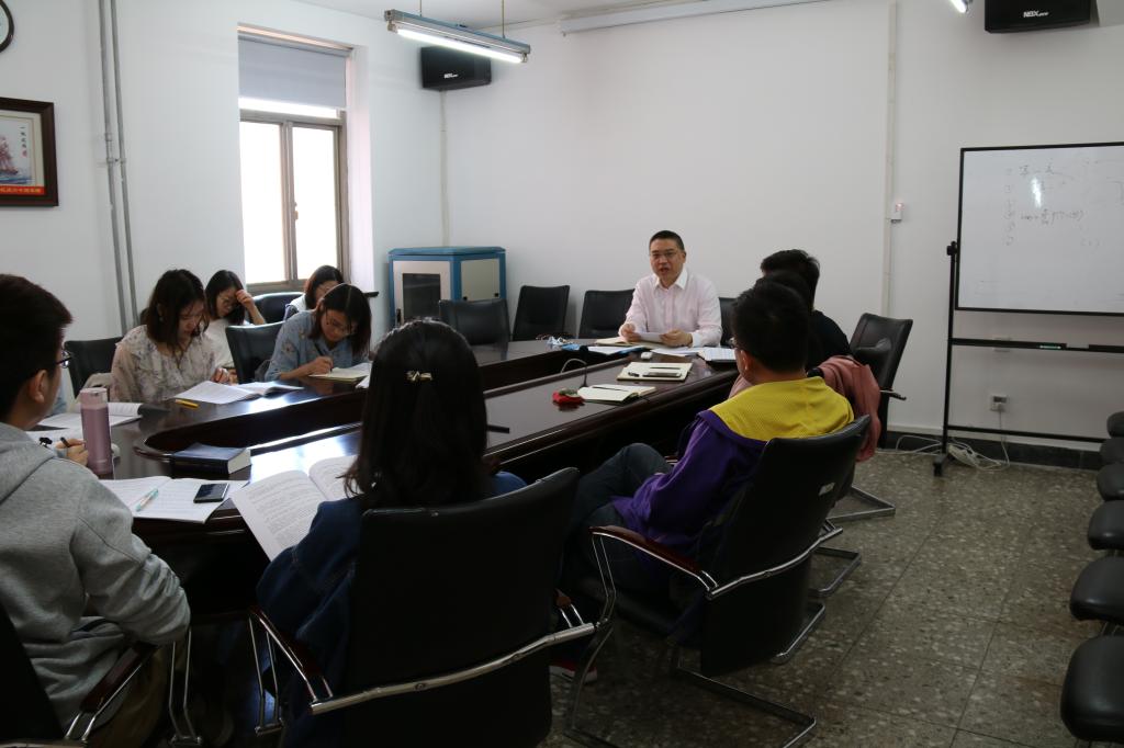 张晓涛院长对同学们的发言表示肯定,并向同学们深入解读了习近平主席的“五四”系列讲话内容以及其所传达的精神内涵。他指出,青年与年龄无关,与内心相关,习近平“五四”系列讲话具有时代性,既面向未来,又承接历史,要仔细研读这些讲话以及系列摘录,更好认清中国当代的国情。如今,中国面临一个新的时代的到来,也意味着一个新的机遇的到来,近四十年的改革开放发展具有中国社会自身的特点和规律,青年人在看待出现的社会问题时,在反思的同时要思考正确的解决办法。在如何做新时代的青年人方面,张院长认为,青年人要树立远大志向,“功崇惟志,业广惟勤”,没有远大的理想信念,一个人就会在精神上“缺钙”,远大志向是一个人成功不可或缺的因素,同时,青年人也要保持勤劳的品质;学习是成长进步的阶梯,实践是提高本领的途径,新时代的青年人要不仅要重视学习,充实专业知识,还要注重实践,练就过硬的本领;青年人要坚持面向现代化、面向世界、面向未来,及时进行知识更新,要解放思想,与时俱进,培养求真务实的精神;青年人要注重锤炼高尚品格,一个没有精神力量的民族难以实现自立自强,一项没有文化支撑的事业难以持续长久,这种文化是推动一个国家经济增长的重要力量,要把正确的道德认知、自觉的道德养成、积极的道德实践紧密结合起来;青年人要重视学习核心价值观,继承中华优秀传统文化,增强文化自信。最后,张院长再次总结强调,青年与年龄无关,面对新时代,青年人要认清时代,心存理想,保持与时代相契合。