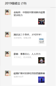 在战“疫”期间,无数的共产党员响应组织号召,递交请战书冲锋前线,用实际行动践行初心使命,成为我们学习的榜样。为了提高支部成员的责任意识,发挥党员模范带头作用,有力凝聚战“疫”强大合力,党支部组织学习《教育部致全国大学生的一封信》,倡导支部成员做一个合格的守护者、勤奋的修行者和沉稳的识途者,并从党员教育和学习规划两方面进行交流分享。在党员教育方面,党支部借助学习强国APP,定期在班级群中分享有关疫情防控、党内法规、最新政策等内容,引领积极分子、团员及时了解疫情实况,坚定打赢疫情防控阻击战的理想信念。在学习规划方面,研一党员和积极分子分享了假期中停课不停学、学习不延期的学习计划,主要包含课程学习、科研任务、软件编程、读书备考等;研二的党员和积极分子分享了线上春招、撰写毕业论文等经验,并结合自身实际提出了中肯的学习和求职建议。通过此次交流学习,支部成员更加明确了现阶段的主要任务,强化了大局意识和自律意识,促进全身心的投入到学习和工作当中。