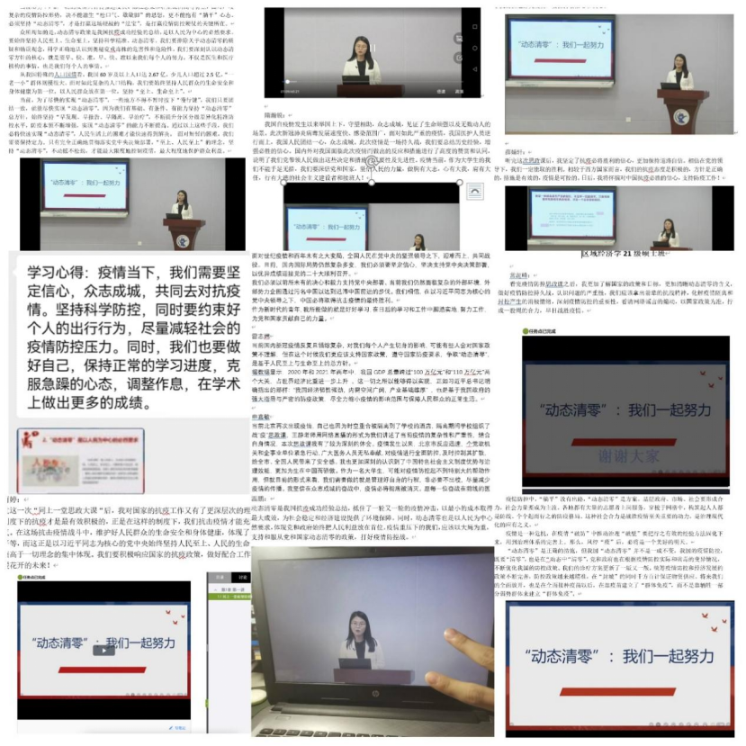 课程学习结束之后,同学们积极反馈自己的学习心得,纷纷表示在这场疫情防控阻击战中,一方面要尽力做好公民责任,抱定必胜信心,坚决支持党中央决策部署,积极配合各项疫情防控政策,坚持“动态清零”总方针不犹豫不动摇,切实将各项举措落实到位;另一方面要勇于担当新时代青年学生责任,积极调整自己的心态,面对疫情反复暂缓返校的现实情况合理安排自己的学习进度,规划、利用好宝贵的时间,保持进步,不断提高自己的能力,为未来向党和国家贡献自己的力量打好坚实基础。