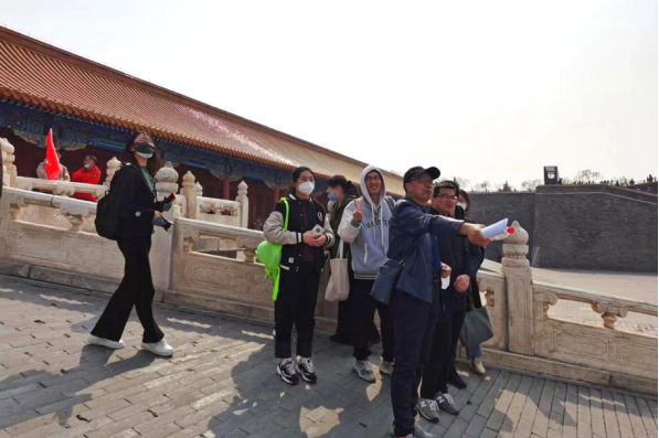 在参观过程中,郝老师绘声绘色地为同学们介绍了不同宫殿的作用和特点,详细讲解了故宫的历史变迁和著名典故,贯穿古今,加深了同学们对明清历史的了解,巩固并拓展了课堂中所学到的知识。此外,郝老师还生动形象地为同学们一一解说了故宫的建筑规制和特点,从随处可见的板门到装饰精美的槅扇,从屋顶内绘制着各种彩画的天花到殿宇屋脊外排列着的脊兽,从梁上设计精巧的榫卯斗拱到地面工序复杂的金砖等等,增进了同学们对我国古代建筑最高水准建筑科学、建筑技术、建筑美学、建筑文化的了解。