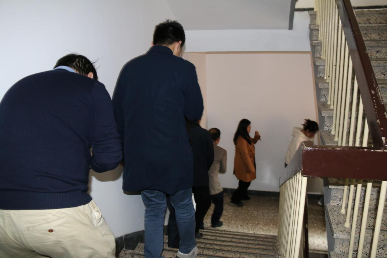 随后,保安队宋队长组织了消防疏散演习。他发出演习开始指令,师生用袖子捂住口鼻,俯身弯腰,沿着楼梯墙壁向出口疏散。随着火灾警报声的响起,图配楼门口的烟雾弹冒出阵阵浓烟,师生穿过烟雾,有序快速地疏散到楼下空旷地带。消防车和消防队员也及时赶来,开展了灭火演习。