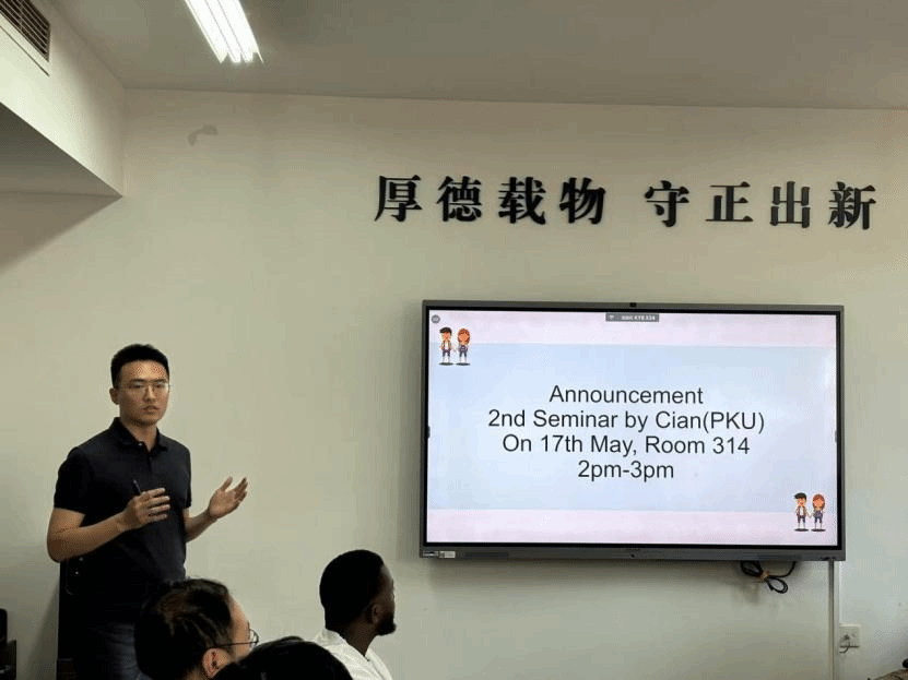 随后,闫昊生副教授介绍了学院为支持学术交流所举办的系列留学生工作坊的相关情况,以及在pc28预测在线预测神测网咪牌留学生培养环节,将进一步引入“Coffee Hour”和“Seminar”环节。“Coffee Hour”将促进国际学生与教职员工之间的非正式互动,促进学术指导和项目建议。同时,“Seminar”与工作坊形式不同,侧重于帮助留学生”了解中国发展,讲述中国故事”,通过调研、同行交流和信息共享进行。最后闫昊生老师鼓励各位同学积极参加交流,在相互学习中共同成长。
