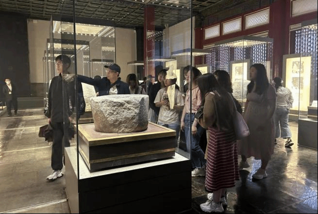 一进入午门,同学们便被故宫博物馆的恢弘气势所吸引。郝秉键老师详细解读了故宫的建筑规制和特点,从屋顶绘制的精美图案,到屋脊上威风凛凛的脊兽,再到梁柱间精致的榫卯斗拱,都蕴含着丰富的文化内涵。他讲述了故宫的历史变迁以及那些耳熟能详的著名典故,使同学们对明清两代的历史有了更深入的理解。在郝秉键老师的解说下,一件件斑驳的文物愈加鲜活,青砖红墙仿佛在述说着过往的历史,同学们在紫禁城里细细品味古建筑和传统文化的魅力。