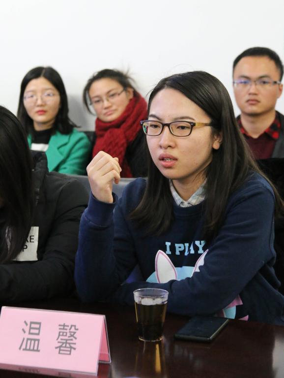随后,就任于北京农商银行总行的王丹和中国光大银行信用卡中心的温馨和同学们进行了交流发言。王丹认为,与前辈的沟通很重要,对自身所处岗位的未来方向要有清晰的认识,待人接物需以真诚相待;温馨提出,面对求职面试中的得失,要调整好自己的心态,找到最适合自己的方向和目标,并且在日常中培养良好的习惯。