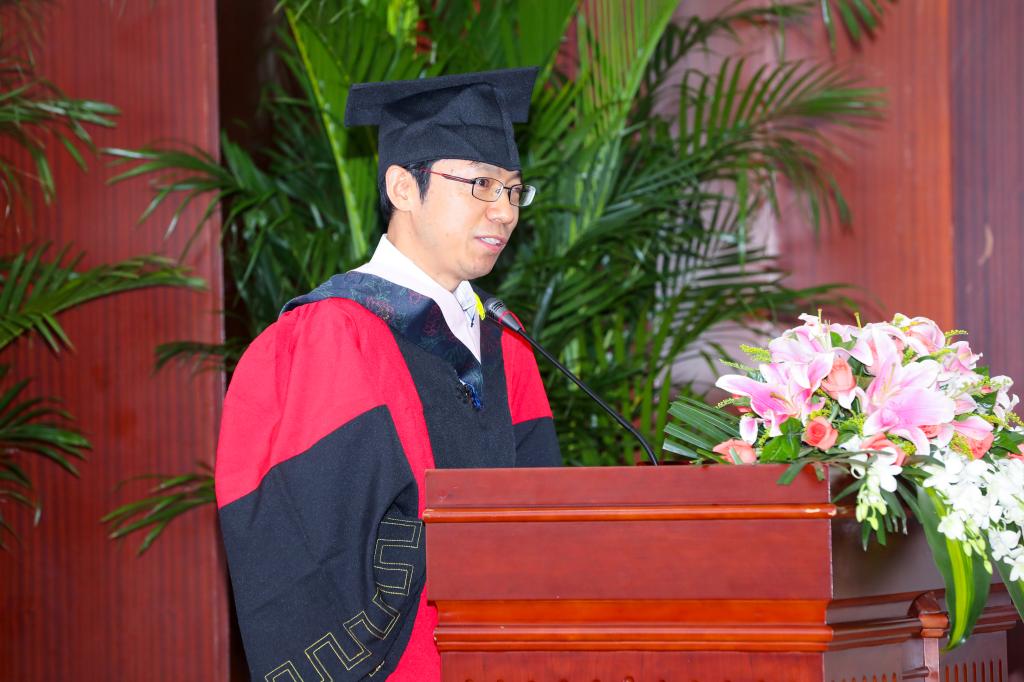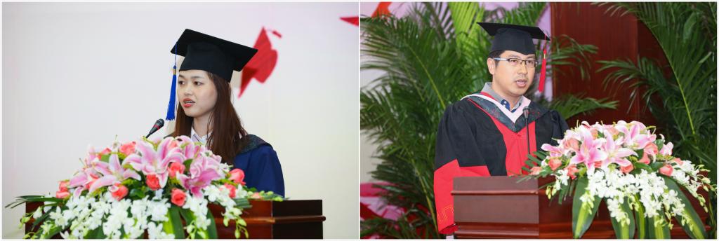 2019届硕士毕业生代表黄慧华和博士毕业生代表张居营也发表了毕业感言。他们代表毕业生感谢学院以及师长培育,在这里自己不仅丰富了知识,开拓了视野,更收获了心灵的成熟,牢牢记住了无论走到哪里,都要做一个有原则、有底线的人。正如习近平总书记在纪念五四运动100周年大会上谈到的:“青年理想远大、信念坚定,是一个国家、一个民族无坚不摧的前进动力。青年志存高远,就能激发奋进潜力,青春岁月就不会像无舵之舟漂泊不定”。他们以激情昂扬的语调鼓舞应届毕业生们遵从“厚德载物,守正出新”的财经格言、铭记“忠诚、团结、求实、创新”的龙马精神,为新时代国家发展与社会进步贡献自己的一份力量。