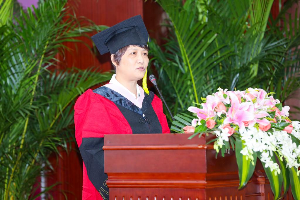陈灵研究员作为导师代表发言,陈灵老师回顾了自己作为中财复校后的首批毕业生的情形,以及毕业时同学们曾约定要“为中华之崛起而读书”的雄心壮志。时光飞逝,当年的同学们已在各自的工作岗位上为国家的发展谱写了壮丽的篇章;回看今朝,希望同学们不忘初心,胸怀理想,完善自身,同时,终身重视体育,加强锻炼,为祖国健康工作五十年,并祝愿毕业生们都能收获美好的爱情和婚姻。