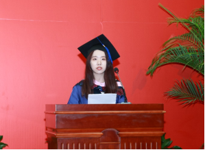 宁静副研究员作为导师代表发言,向圆满完成学业的全体毕业生表示祝贺。宁静老师向毕业生们提出三点期许:第一,要不忘初心、坚定信心。鼓励毕业生们牢记最初的梦想,从容迎接人生道路上的种种挑战。第二,要主动发现问题、并善于解决问题。要将被动吸收知识的“学生思维”转变为主动发现并解决问题的“职场思维”。第三,要保持爱好、享受生活。不断开拓新的爱好,用爱好做生活和工作的调剂和平衡。最后,宁静老师祝愿全体毕业生在新的人生征程上,事业有成、前程似锦、幸福常伴。
