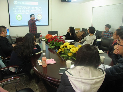 北京财经研究基地专家赵国钦博士做了题为“社会网络分析方法”的学术讲座。他介绍了社会网络分析方法的概念以及核心要素,进而结合世界贸易网络演化的例子介绍了社会网络分析方法的应用,并推荐了相关软件和教程。青年教师和研究生就讲座内容进行了深入的交流和探讨,会议在热烈的气氛中圆满结束。