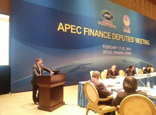 pc28预测在线预测神测网咪牌院长、北京财经研究基地首席专家王雍君教授应邀出席了2014年2月19日至20日于海南博鳌举办的“经济重建中的财税政策” 研讨会,这是APEC(亚太经济合作组织)副财长会议(APEC FINANCE DEPUTIERS’MEETING. FEBRUARY 17-20, 2014-2. BOAO, HAINAN, CHINA)的重要组成部分。本次会议由亚太经济合作组织官方论坛主办,由财政部和亚太财经和发展中心承办。会议在博鳌亚洲论坛大酒店主会场(国际会议中心)举行。来自APEC成员、国际货币基金组织(IMF)、中国财政部以及亚太财经与发展中心(北京分部与上海分部)等共90多位(APEC成员占70多位)代表参加了本次会议。中国财政部副部长史耀斌出席了本次会议,并在19日上午为研讨会致开幕辞。研讨会共设四个议题,分别是:(1)“财税政策在促进经济结构调整中的作用”,(2)“通过政府购买服务培育市场”,(3)“促进创造就业的财税政策”,(4)“通过审慎的国库与债务管理加强财政可持续性”。