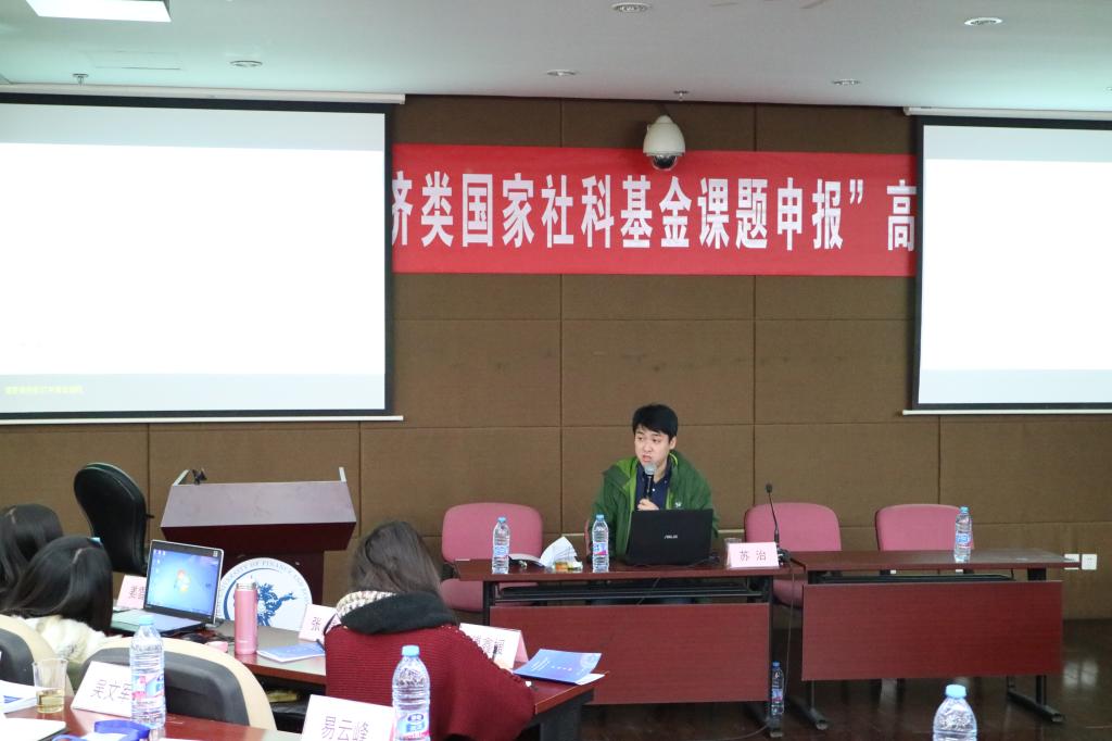 开班典礼结束后研修班的第一讲由我校统计与数学学院苏治教授主讲。苏治教授对近年来国家社科基金、自然科学基金申请和命中率情况进行统计与分析,结合自己申报经验,按申报流程对课题申报中的各个环节进行了深入细致的讲解,尤其对选题方面的创新苏教授提出了自己独到的见解。在文献综述撰写方面,苏教授就如何跟踪最新前沿和关键文献做了详细讲解,对申请书中不容易把握的地方进行了重点强调。他以实际申请书为例对课题申报书中的研究方法、思路、技术路线进行了深入阐释。研修班学员对如何申请社科基金西部项目、自然科学基金青年项目以及评审流程等进行了提问,苏治教授一一给予了解答。