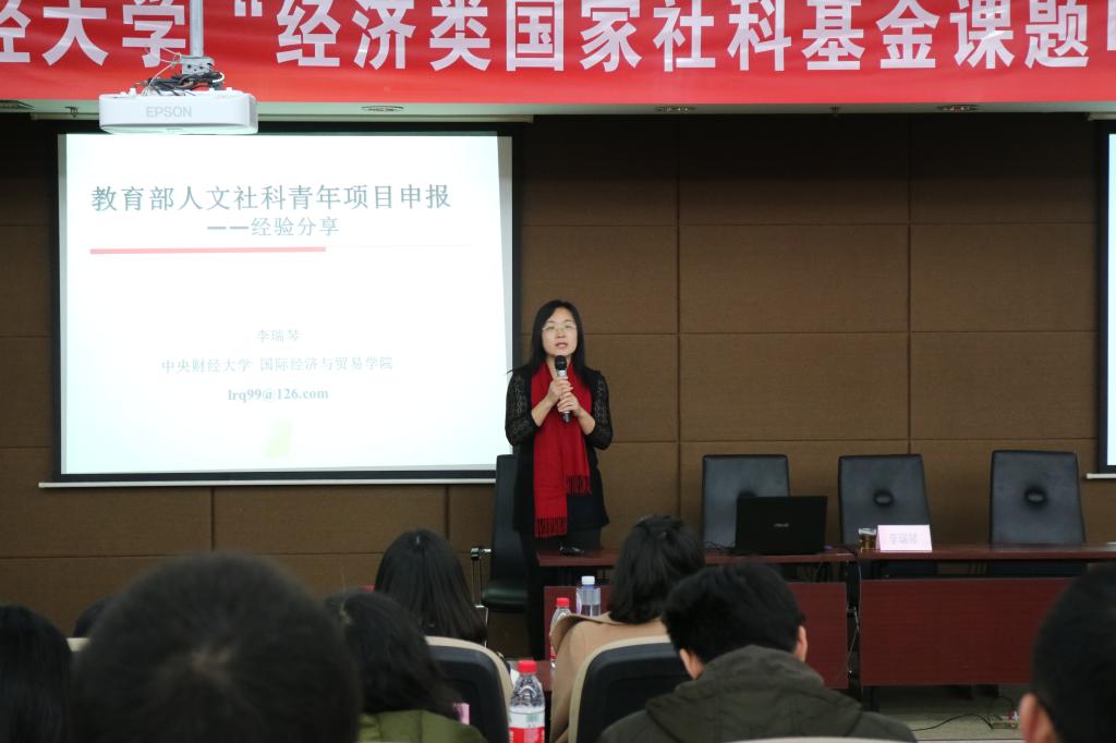 1月7日上午,研修班第二天第一讲由我校国际经济与贸易学院党委副书记李瑞琴教授主讲。与第一天课程视角不同,李教授侧重教育部人文社科青年项目申报经验的分享。她从前期准备、选题、申请书写作及其他注意事项四个方面依次展开,并以自身成功申报的两个选题有针对性地讲解。