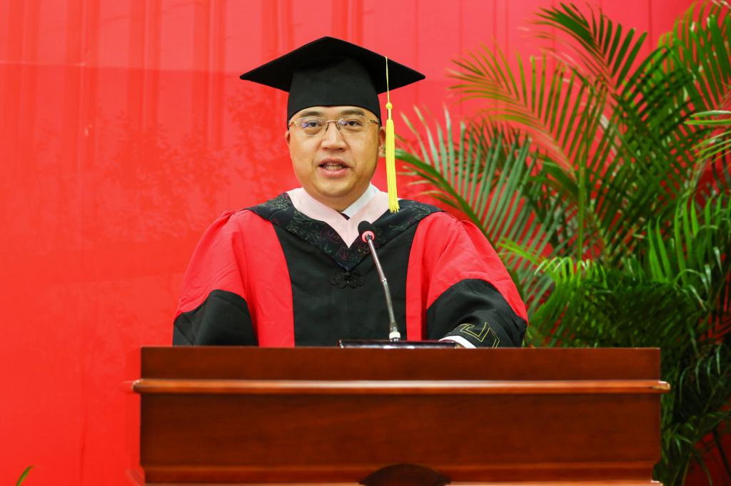 在这个毕业骊歌起,青春在启航的时刻,张院长与毕业生们分享了他的一些感悟。第一个层面感悟与三个词有关——青春、选择、责任。张院长希望正值青春年少的同学们,面对任何挫折、失败和打击,都还能够站起来,能够挺立生命向天空呐喊,感到世界充满美丽,能用快乐之心来面对苦难。选择决定命运,认知决定选择,他希望毕业生在离开学校以前,就应该清楚地意识到,在大学里学到的知识,绝对不足以帮助他们建立一个广阔的视野,必须养成随时随地跨界学习的习惯和能力,不断探索那些与自己的专业貌似无关的知识新边疆。责任和担当是“家国情怀”的价值体现,张院长希望毕业生们心中有梦,坚持逐梦,努力圆梦,这不仅是自身价值的追求,更是出于对家庭,对集体,对国家,对时代的责任和情怀。第二个层面感悟与两个词有关——教育和认知。张院长强调,从学校走向社会,自我教育越来越重要,甚至占主体地位,它决定人与人发展轨迹的差异,谁忽视或者放弃了自我教育就是在忽视和放弃自我发展。