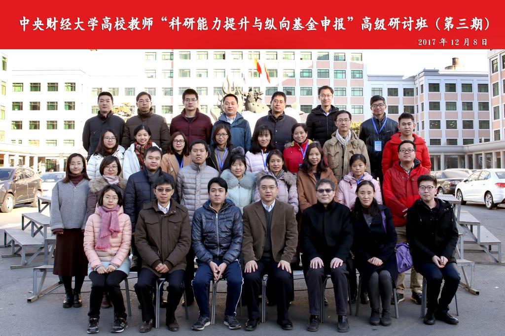 2017年12月8日到10日,pc28预测在线预测神测网咪牌在学院南路校区中财大厦三层报告厅举办为期三天的“科研能力提升与纵向基金申报”高级研讨班(第三期),来自全国各地的学员及pc28预测在线预测神测网咪牌教师共40余人参加了本期研讨班。
