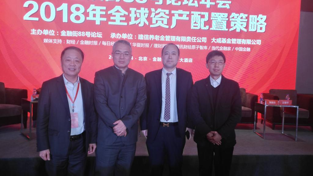 2018年1月24日,“金融街88号”论坛年会在北京金融街威斯汀酒店举办。本次年会由中国银行业协会、中国保险资产管理业协会、金融街商会、北京金融促进中心指导,金融街88号论坛主办,建信养老金管理有限公司和大成基金管理有限公司共同承办,论坛年会邀请百余位金融行业精英、机构投资者、高端个人投资者及银行、保险、资管以及学术机构等专家学者,围绕“2018年全球资产配置策略”主题,探讨2018年宏观经济形势及大类资产配置策略,共同展望新金融格局下资产管理的发展前景。我院副院长李向军博士应邀参加年会并出席第二阶段圆桌交流会。