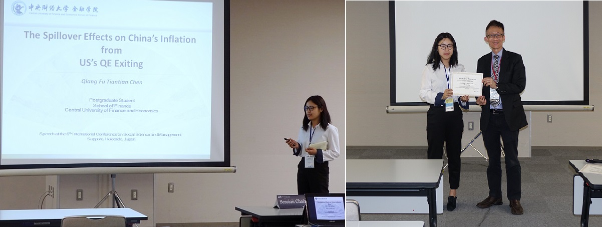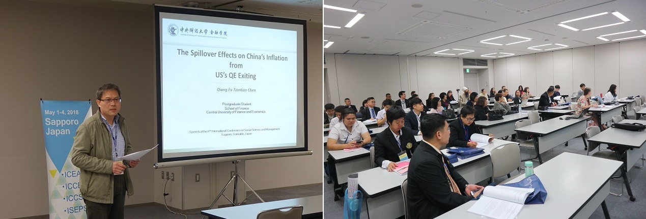 5月1日至4日,第六届社会科学与管理国际研讨会(ICSSAM:International Conference on Social Science and Management)在日本北海道札幌会议中心举行。会议由高等教育论坛(High Education Forum)举办,涉及的主题包括但不限于金融、政治、社会、文化、教育、法律、经济和管理等多门学科,邀请了世界范围的学者、研究人员和从业人员对自己的研究成果进行跨学科交流和多领域分享。我院傅强副院长受邀带领中央财经大学金融学院2016级研究生王亚楠和陈天天两位同学参会,在会上宣读论文并进行学术交流。