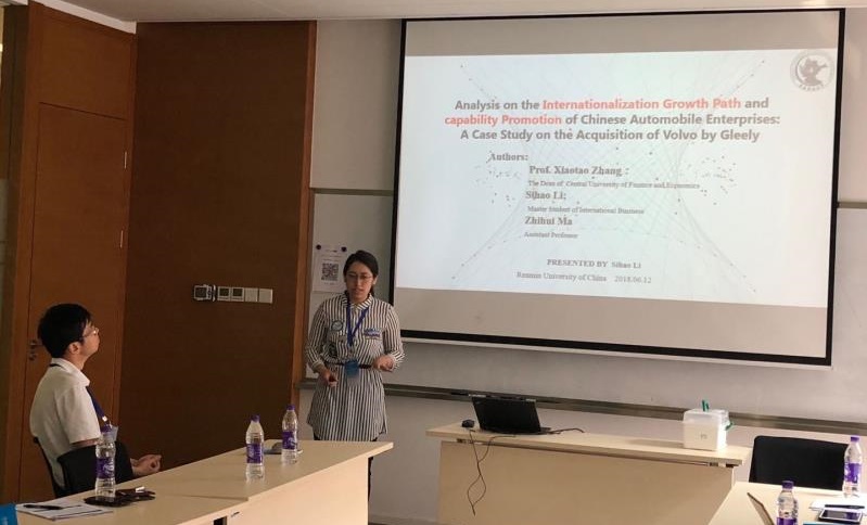 我院国际投资研究中心主任张晓涛教授与我校2016级国际商务专业硕士研究生李斯好、天津理工大学讲师马智辉合作的论文《Analysis on the Internationalization Growth Path and Capability Promotion of Chinese Automobile Enterprises A Case Study on the Acquisition of Volvo by GEELY》被2018年《中国工商管理研究前沿》国际会议The5th Frontiers of Business Research in China Annual Conference接收,并于2018年6月10日—12日受邀到会发表学术演讲。