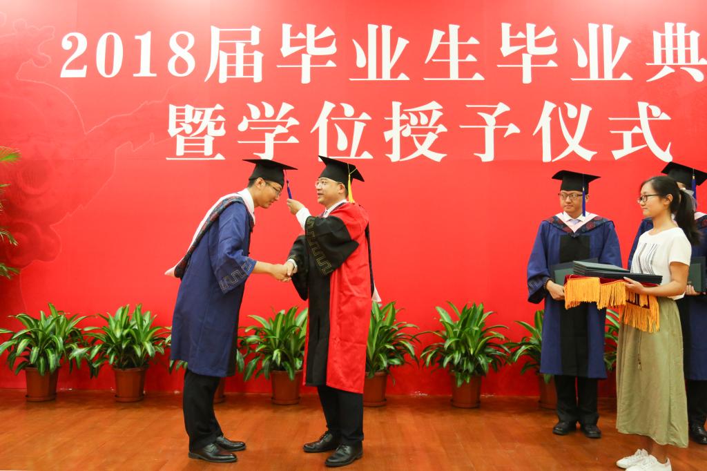 之后,张晓涛院长为2018届毕业生一一拨转流苏,颁发学位证书和毕业证书,并与每位同学热情握手、合影,寄语祝贺。