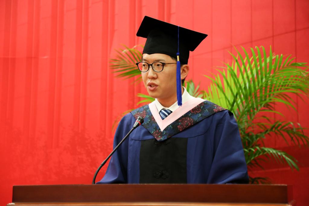 李军研究员作为导师代表发言,与各位毕业生回忆了两年来难忘的共同学习和成长的经历,表达了自己衷心的祝贺和美好的期许。毕业是一切归零的时刻,李军老师提醒大家既要记住成功与快乐,更要记住失败与教训;希望大家在毕业后能做自己喜欢并且适合的事情、拥有幸福而完整的家庭、宝贵的友情、健康的体魄和乐观坚强的心态;对毕业后可能会面临的房子、车子和票子的现实压力,希望毕业生们要清楚自己真正需要的是选择的智慧和实现目标的能力,而不是一味地拜金、攀比。最后李军老师祝愿各位毕业生工作顺利、捷报频传、常回母校看看。