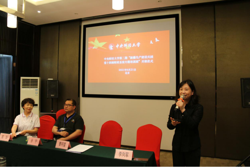 2021年6月21日上午,中央财经大学第二期“新疆生产建设兵团第十四师财政系统专题培训班”在康福瑞酒店821会议室举行开班仪式。我院曹明星副院长、李向军副院长、童伟研究员,新疆生产建设兵团第十四师昆玉市财政局高华副局长、徐宁副局长以及培训班全体学员和工作人员出席了开班仪式。开班仪式由李向军副院长主持。