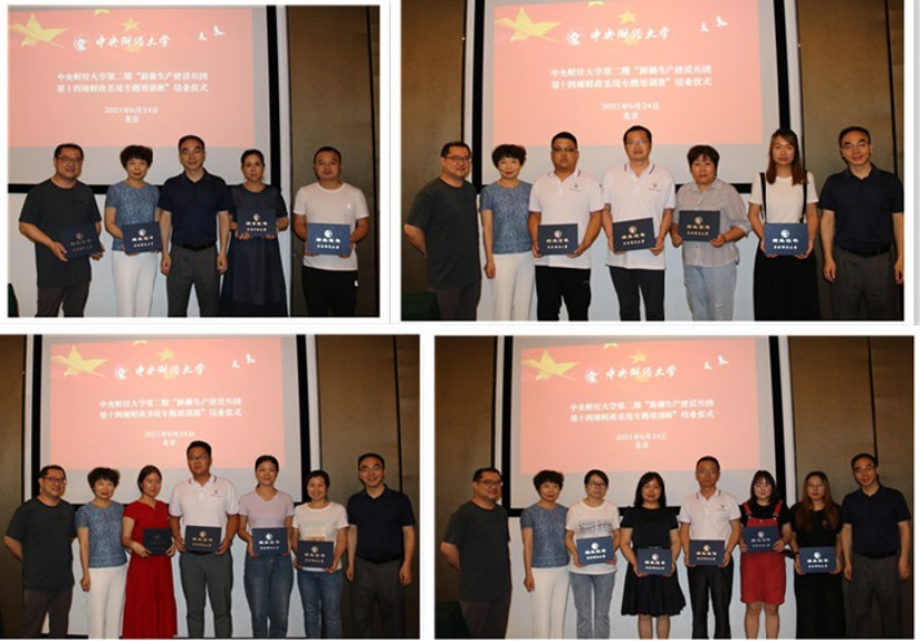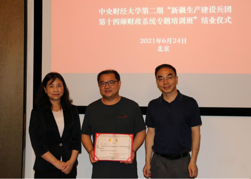 2021年6月24日下午17:30,中央财经大学第二期“新疆生产建设兵团第十四师财政系统专题培训班”在康福瑞酒店821会议室举行结业仪式。我院曹明星副院长、李向军副院长、童伟研究员,新疆生产建设兵团第十四师昆玉市财政局高华副局长、徐宁副局长以及培训班全体学员和办公室主任雷丹等工作人员出席了结业仪式。结业仪式由李向军副院长主持。